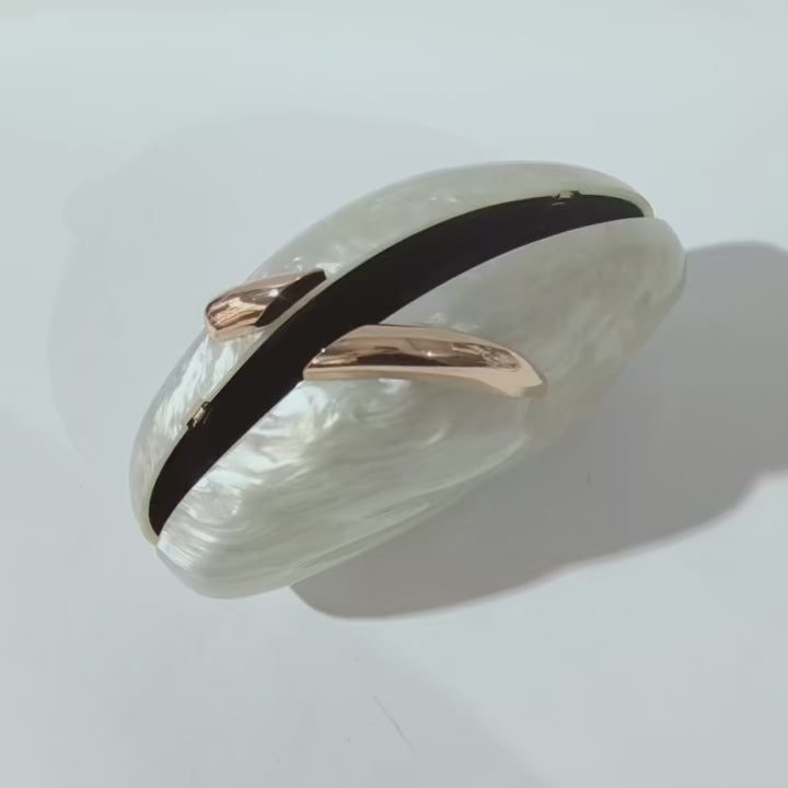 Inspirada nas formas naturais e na beleza orgânica, a Clutch Ramona apresenta um design exclusivo que evoca o brilho sofisticado da madrepérola. Sua superfície perolada e cintilante proporciona um efeito de luz suave e atemporal, enquanto o fecho em metal dourado adiciona um toque moderno e refinado. Perfeita para eventos especiais, esta clutch é a escolha ideal para mulheres que querem expressar elegância pura com estilo incomparável.