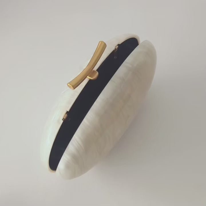 A Clutch Ubud Bali se destaca pelo seu formato orgânico e delicado, com acabamento polido que reflete leveza e elegância. A textura suave remete ao trabalho artesanal típico da ilha, trazendo um ar natural e contemporâneo ao mesmo tempo.